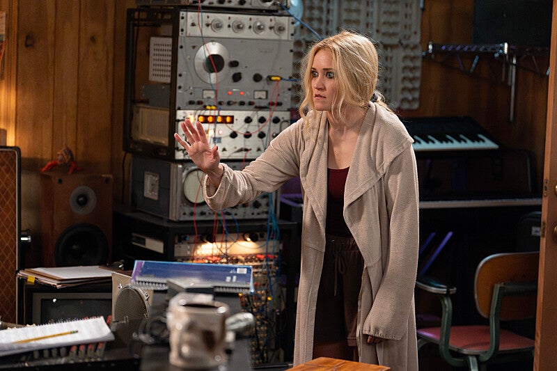 Mandy tries to figure out what she did. She goes to her brother who asks her the last thing she remembers. She says she went to the jukebox. That’s when she’s able to piece together that she was drinking heavily and acting like a jerk. She calls the shop to apologize. Georgie isn’t there but Ruben answers and he’s mad about how she acted too. Ruben says they were playing pool until she stabbed him with a pool cue. He also says Georgie got mad at her when he found her on the pay phone. Mandy figures out who she called.